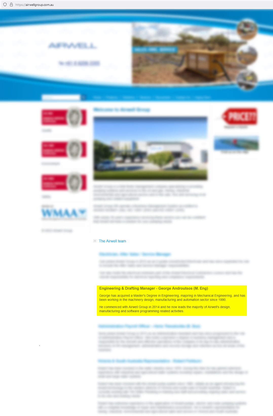 | 2014 - George Androutsos moved to Perth and got an Engineering / Drafting role in the pumping business "Airwell Group Pty Ltd".