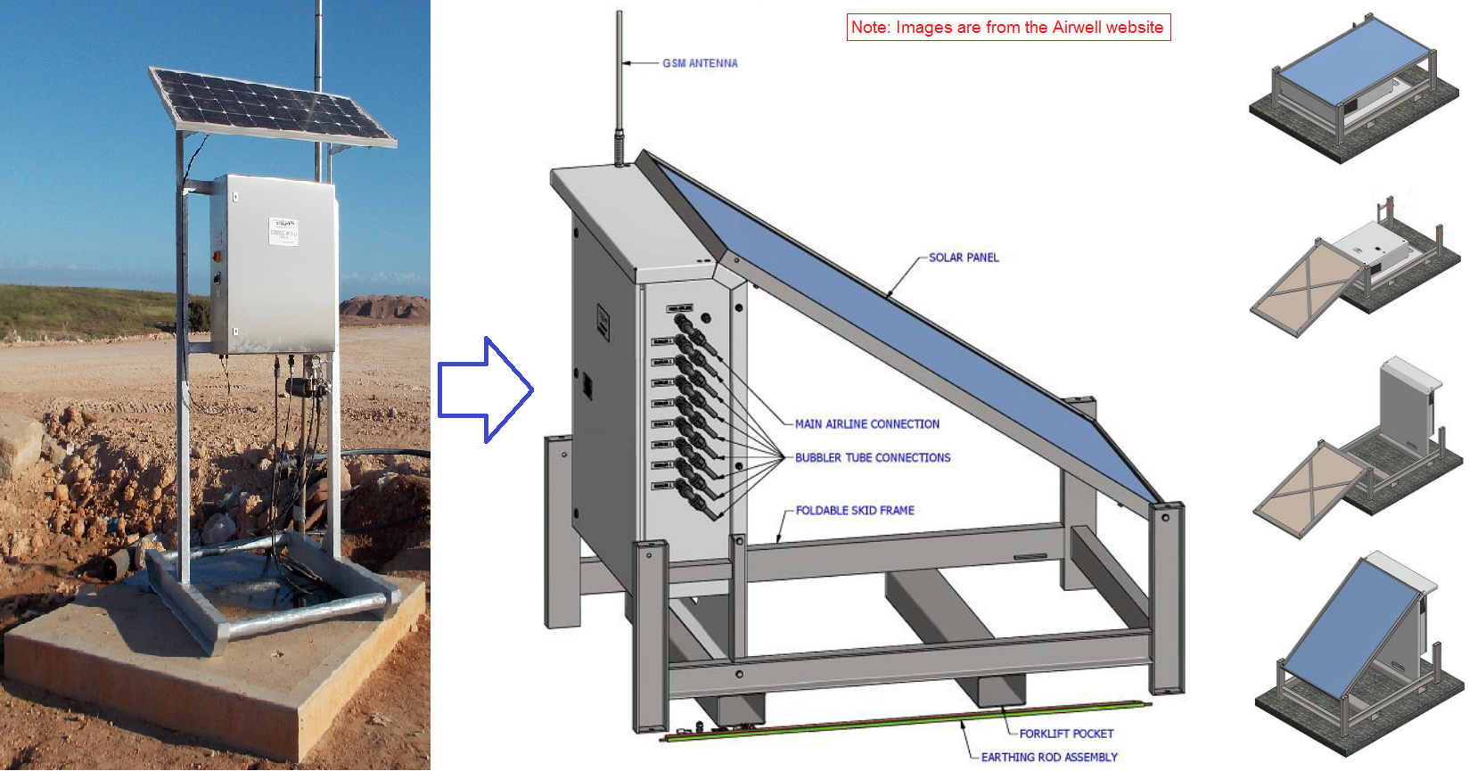 - Standard market air compressor (cheap, reliable, site certified).
